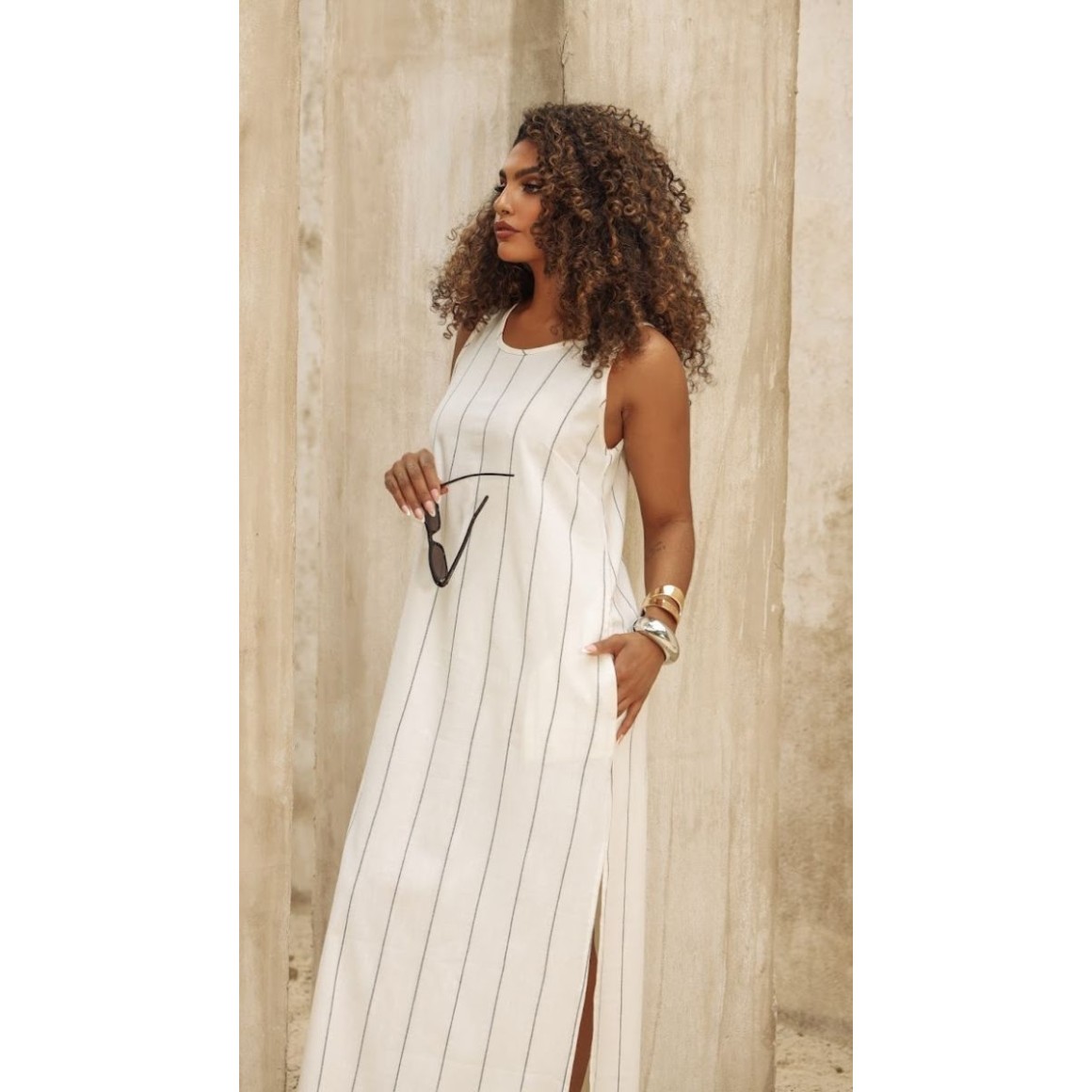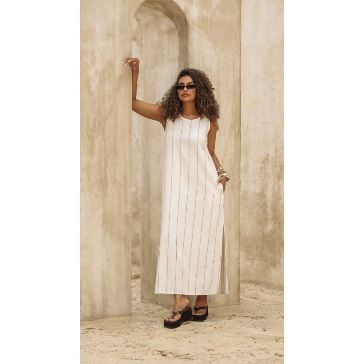 O vestido longo regata listrado é a escolha ideal para quem busca elegância e praticidade no dia a dia. Confeccionado em 62% algodão e 38% viscose, oferece um caimento perfeito, toque macio e frescor — ideal para os dias mais quentes.